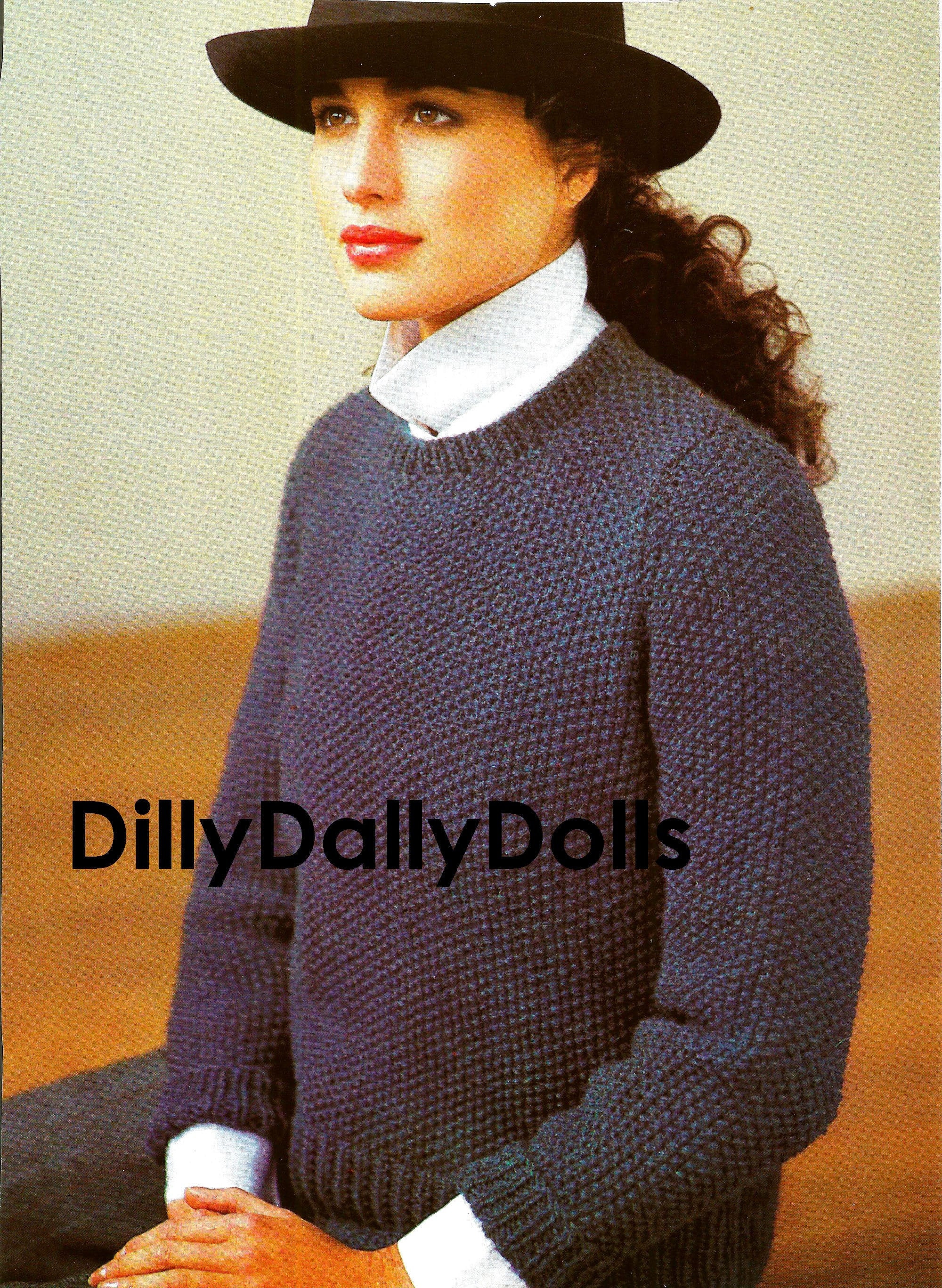 Knitting Pattern Adult Sweater Size 32 34 36 Crew Neck Etsy